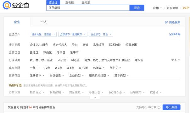 行业发展需要的先天条件是地缘优势。众所周知,我国陶瓷行业核心产区分布在江西、广东等地。由于受矿产资源、交通运输等因素影响,陶瓷行业产地有着相对集中的特点。该地区的陶瓷产业链比较成熟,为陶瓷手工艺培训行业的发展提供了良好的“先天条件”。这些地区对有意愿从事陶艺培训的企业和个人来说,往往能快一步产出更先进的培训理念、设计方案。与其他大工业城市不同的是,经济基础并非陶瓷手工艺培训业务兴盛的关键,手工业氛围浓厚的城市才具备“优质土壤”。例如在爱企查网站上搜索“陶艺培训”关键字,江西省景德镇市专门从事陶艺培训业务且处于开业状态的机构就达数十家,虽然深圳市经营范围含“陶艺培训”的企业众多,但以“陶艺培训”命名且具有专业性的企业却寥寥无几。这足以证明其“先天条件”“优质土壤”的重要性,也说明了专业的陶瓷手工艺培训机构有相对集中于陶瓷产区的特点。